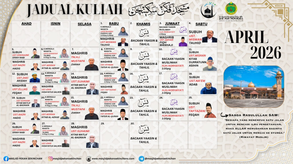 Subscribe Channel Youtube MASJID PEKAN SEKINCHAN,banyak ceramah,aktiviti masjid akan upload di channel ini.Bersama Mengimarahkan masjid.